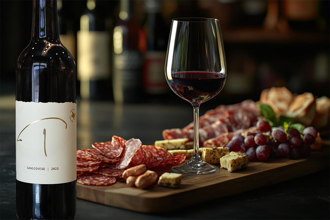 Just T, 2023 (Sangiovese) – Sourced from Newsom Vineyards, Just T is a tribute to my mom and the elegance she inspired. It embodies her spirit and the personal connection at the heart of every bottle.